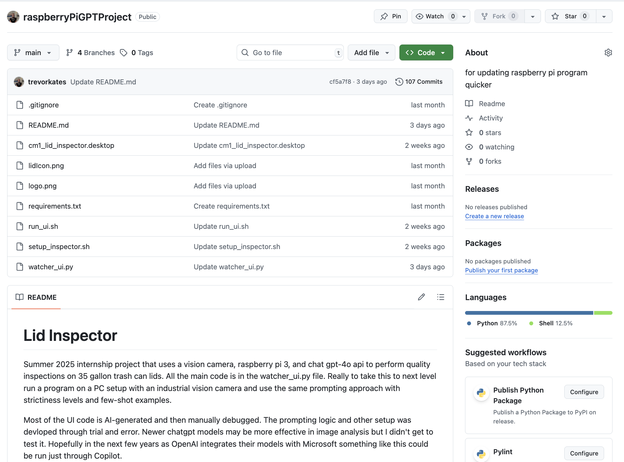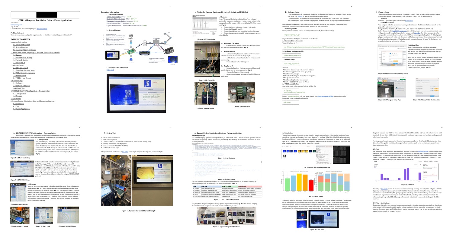 I documented the full build, including a GitHub repository of the code, a floor-level operator’s guide, and a detailed technical manual outlining wiring, integration, limitations, and future applications. Its flexible architecture allows for easy hardware upgrades, such as high-speed industrial vision cameras, and the integration of newer AI models as they become available.