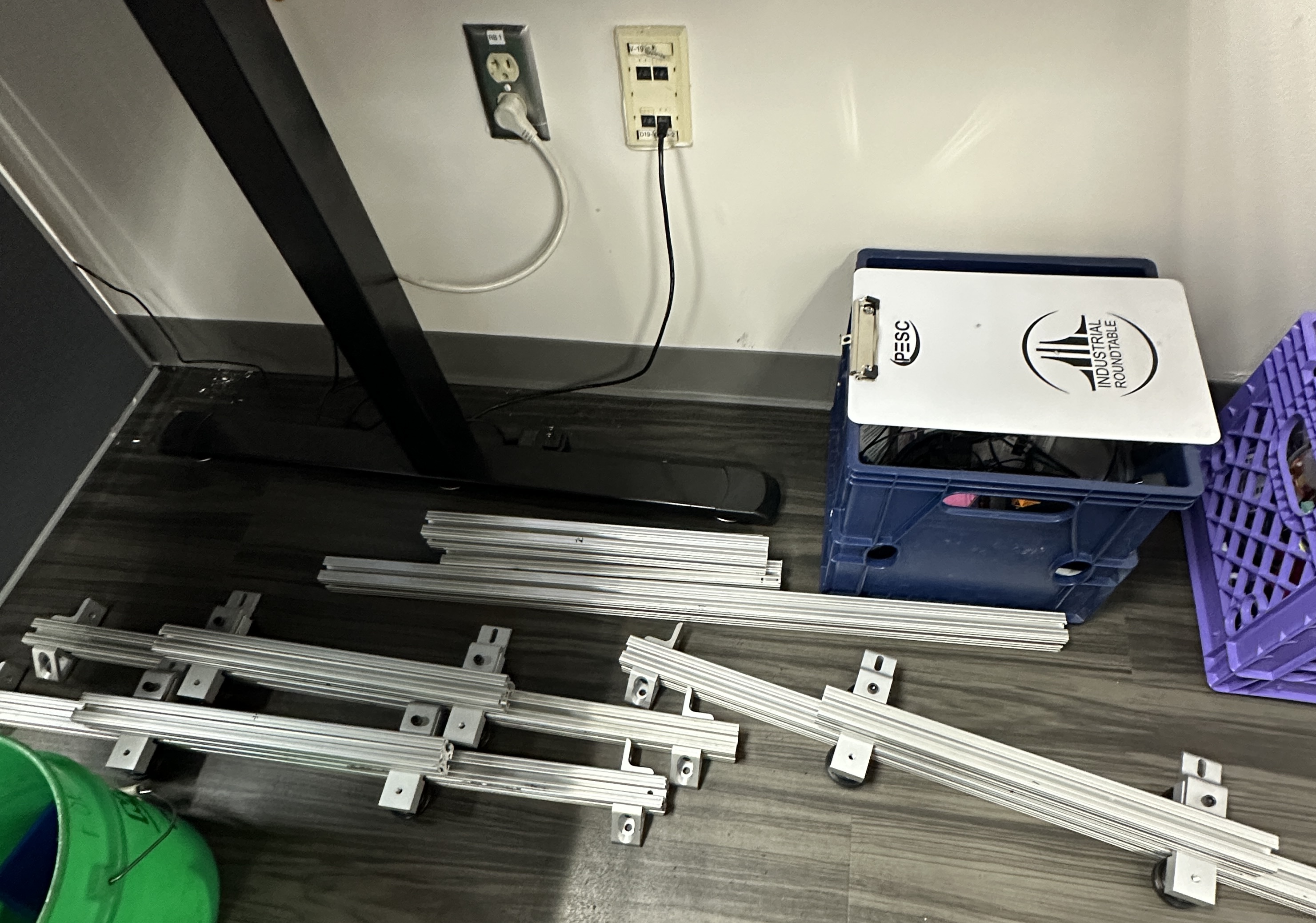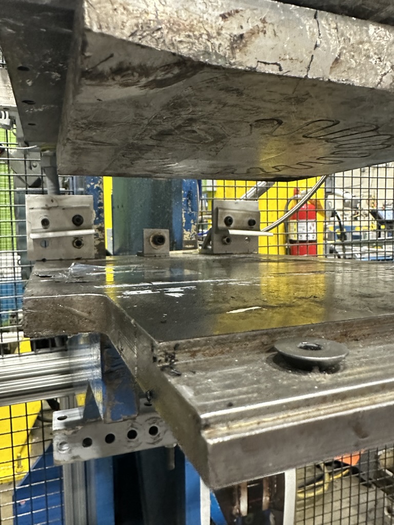 I designed and installed a rolling mechanism to make the existing dust hoods over a regrind tipper bin system retractable. The goal was to allow operators to easily position the hoods to contain dust while pouring in regrind material. The project required creating a custom mounting solution and drilling into the tipper bins’ surprisingly tough metal sides using a handheld drill.