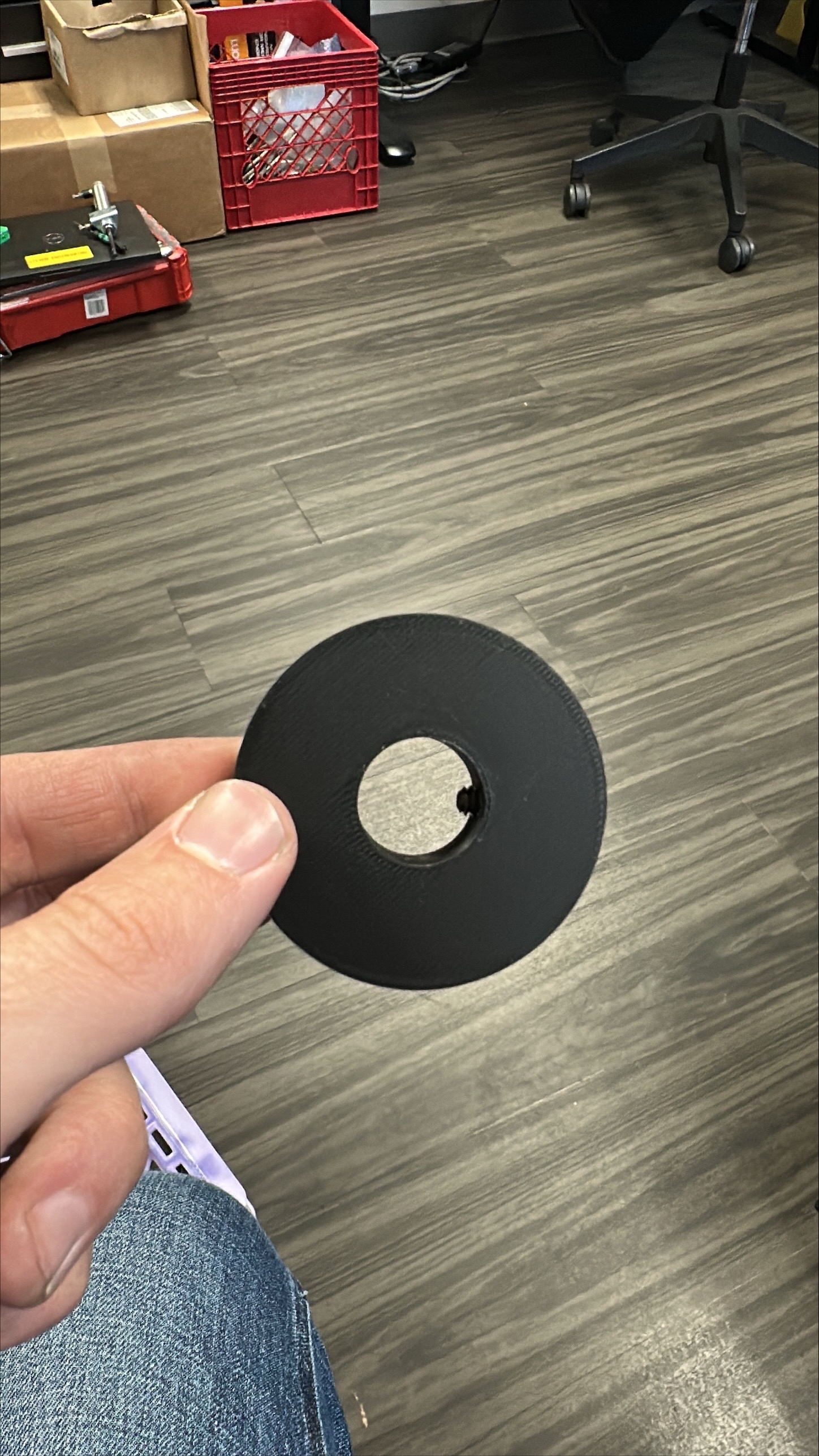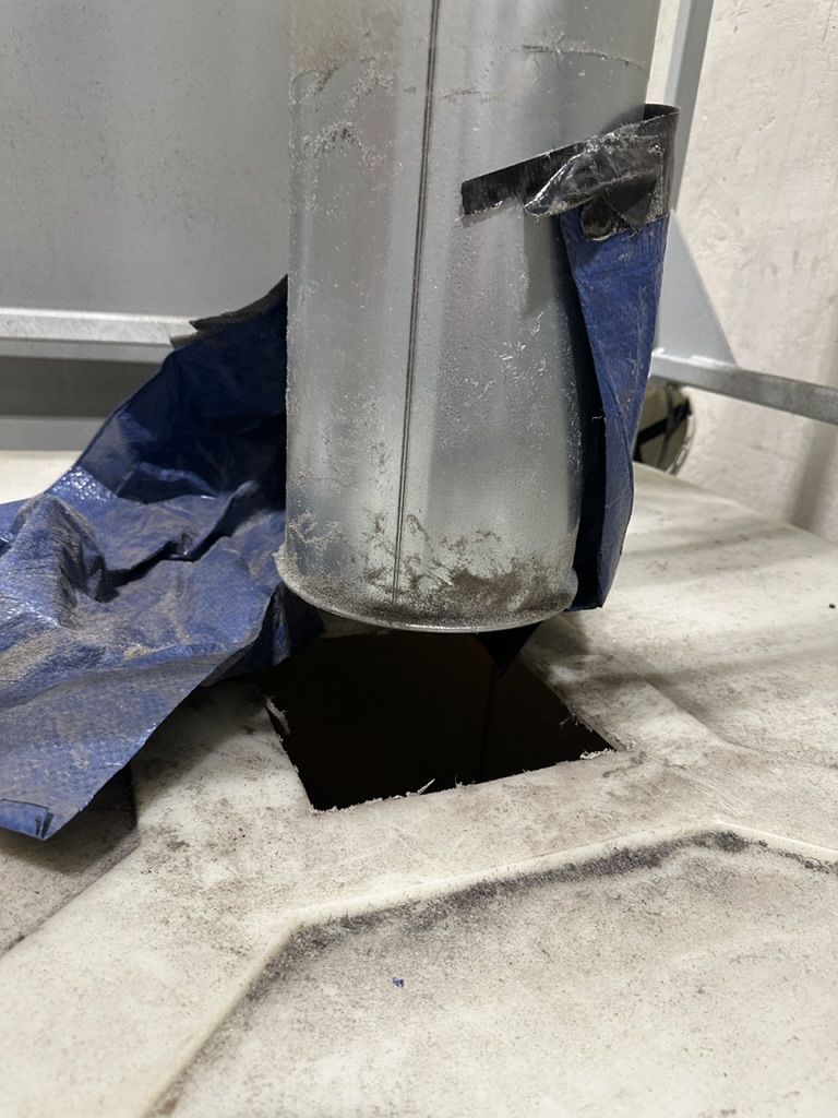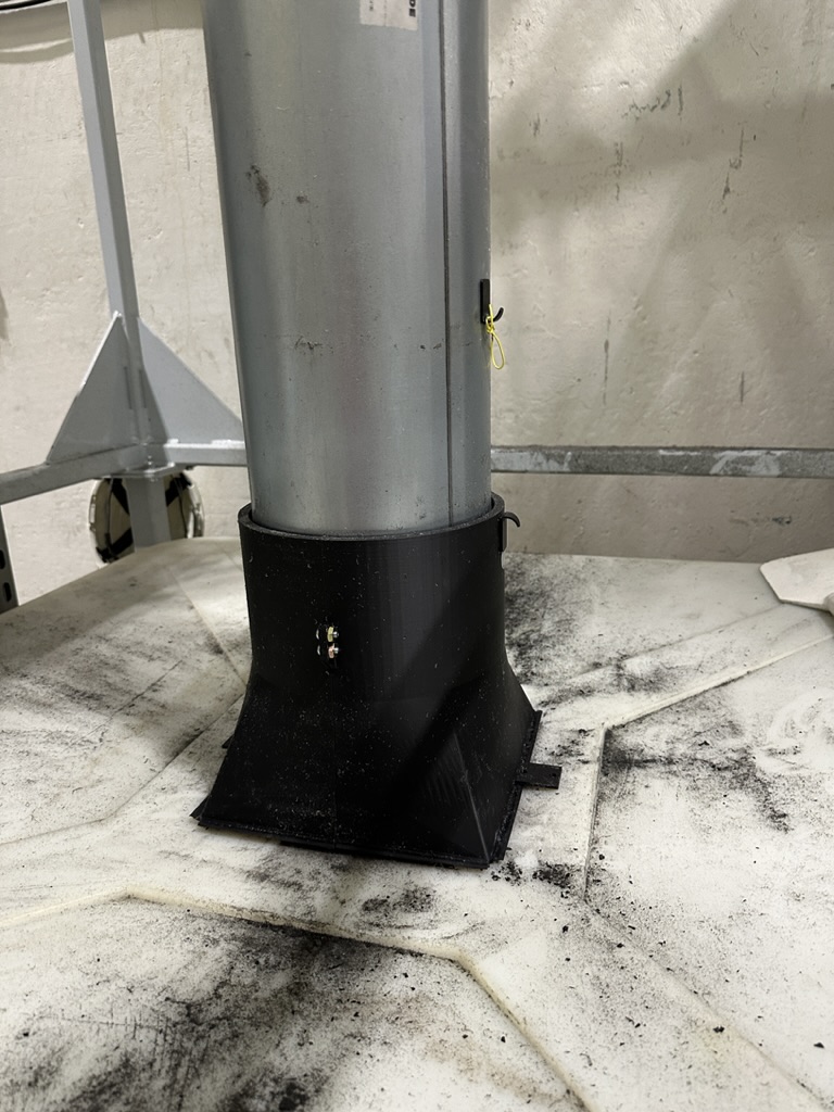 To reduce dust escaping from a regrind cleaning system, I designed and 3D-printed a custom pipe adapter that connected a circular pipe to a square bin opening. The adapter was built to accommodate multiple plastic collection bin sizes, improving containment and versatility.