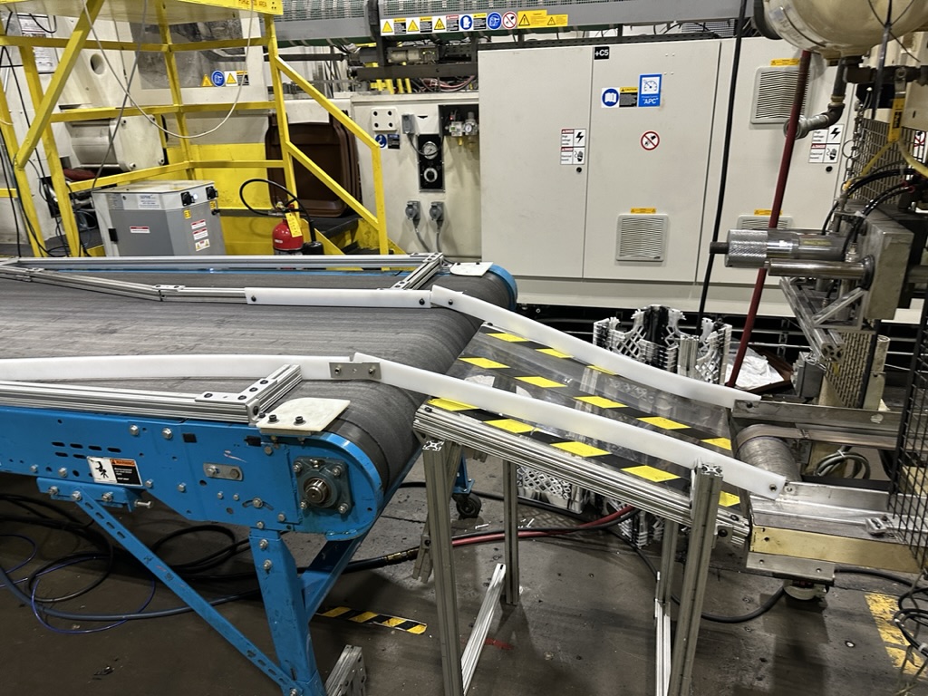 I also designed and built custom part-guidance systems for conveyors to correctly position products for branding or stacking. This work involved fabricating components in the machine shop and using power tools to securely anchor everything in place.