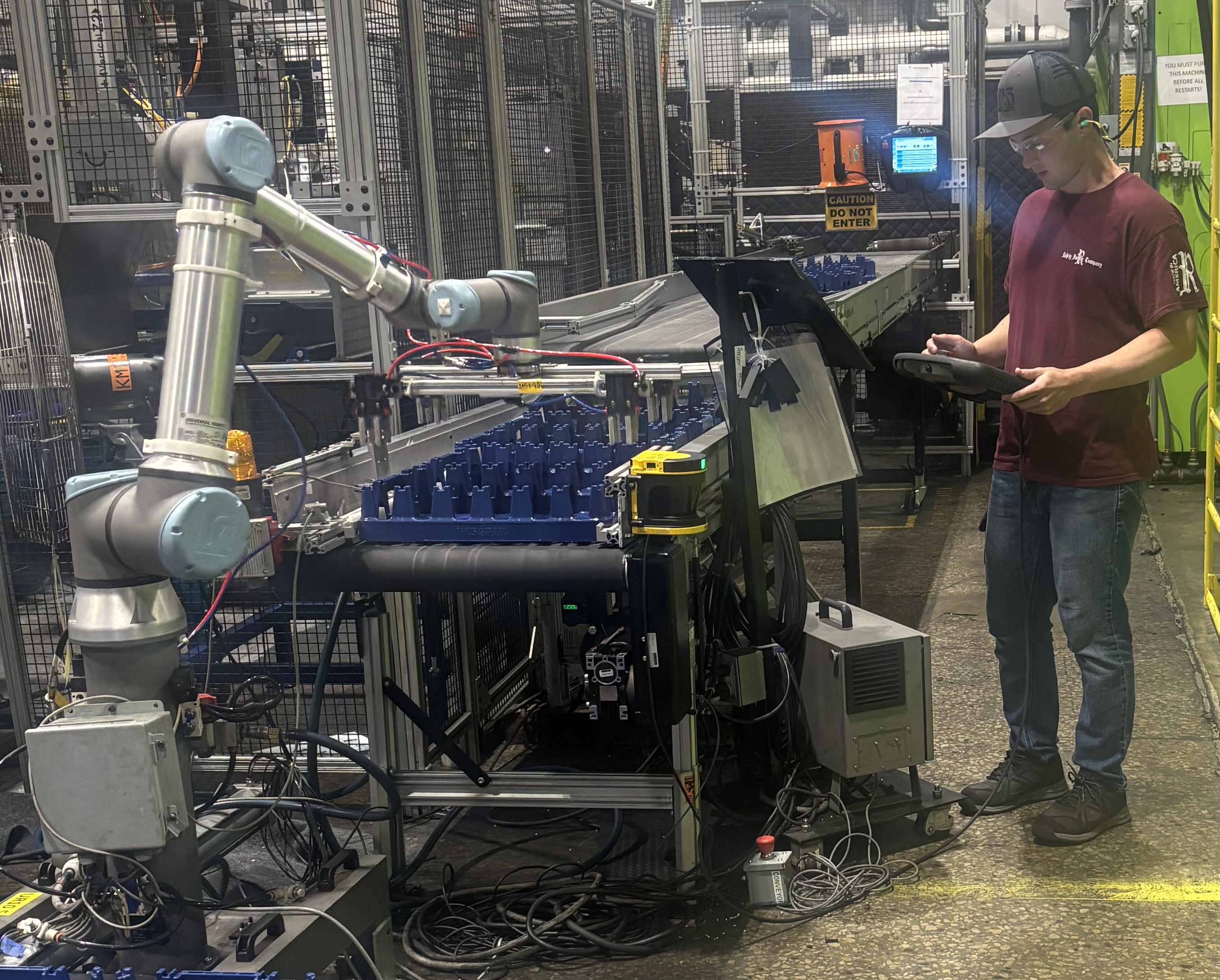 I gained extensive experience programming Universal Robots to efficiently automate the palletizing and stacking of products. This often meant designing and building custom end-of-arm tools (EOAT) and collaborating with multiple departments (Molds, Production, and Quality) to ensure the robots were positioned correctly, stacking accurately, and integrated with area scanners that slow or stop the robots when people are nearby.